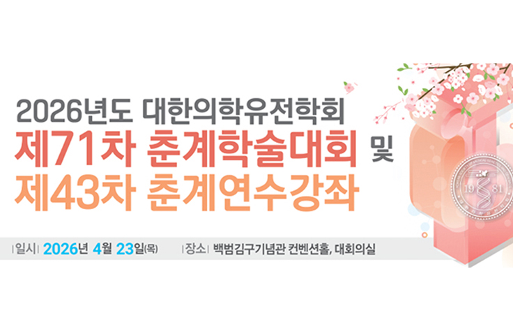 The 71st Spring Meeting of the Korean Society of Medical Genetics and Genomics (KSMG) will be held on April 23, 2026, at the Baekbeom Kim Koo Memorial Hall in Seoul.